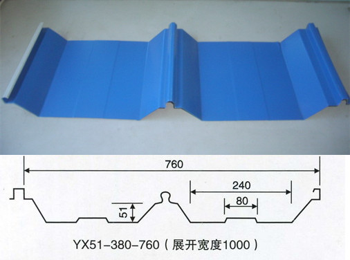 該系列成型機生產的壓型板解決了常規系列壓型板的屋面滲漏問題,壓型板的連接打破了傳統屋面用螺栓連接的慣例,安裝方法采用45度鎖口咬合安裝,使屋面防水效果更加完好。